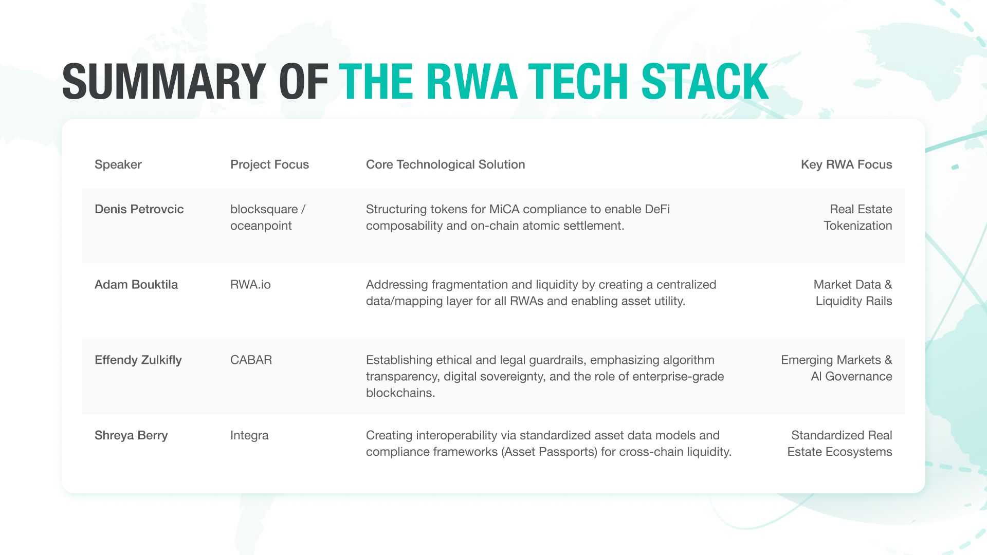 The ultimate vision for RWAs is a global, chain-agnostic market. Shreya Berry, Core Contributor at Integra, highlighted the need for standardization, arguing that "interoperability in Web2 only became real once banks and fintechs adopted standard data models and APIs".