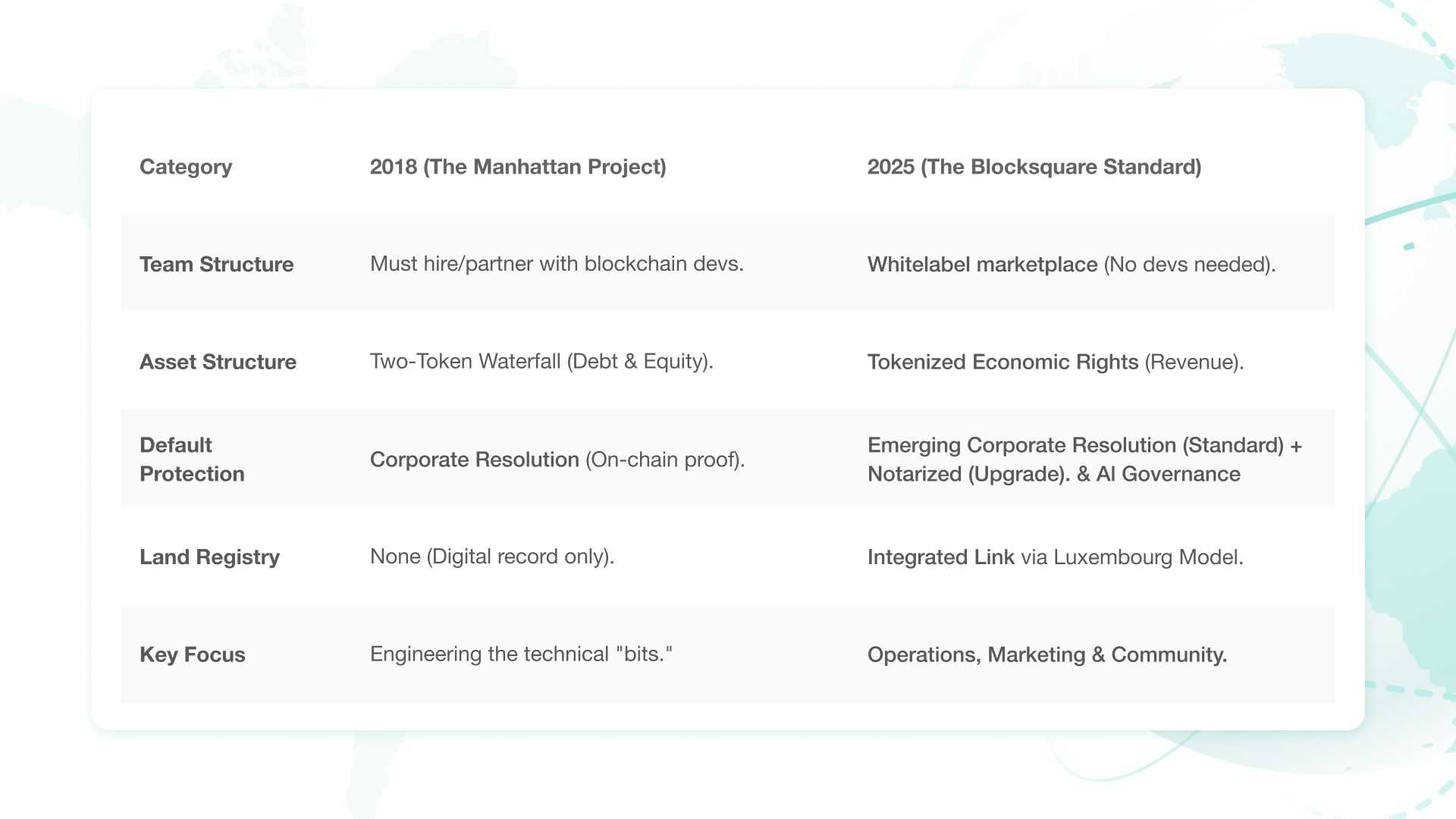 However, looking back from 2025, that project serves as a case study for the massive technical and legal friction of the early "Security Token" era. Today, Blocksquare has transformed those expensive, bespoke experiments into a streamlined, legally-armored infrastructure that delivers on the promises made seven years ago.